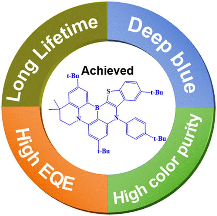 然而,基于 B-N 结构发光分子的 OLED 器件存在着效率滚降严重、寿命偏短等问题,这在蓝光器件中表现更为明显,因此如何平衡效率和寿命是当前面临的一个难题。